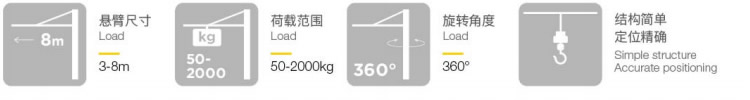 移動(dòng)式旋臂起重機(jī),可實(shí)現(xiàn)360°的旋轉(zhuǎn)起重作業(yè),其起重量為50-500kg,跨度可達(dá)到3m。